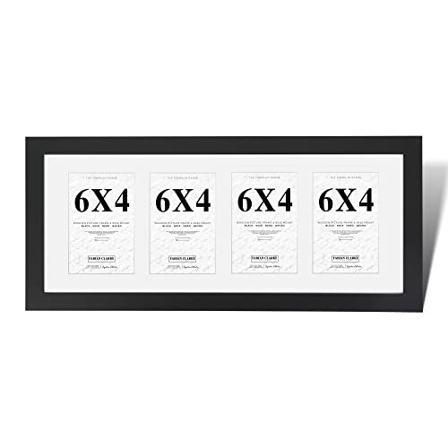 Fabian Clarke London® Modern Black 20x8 Picture Photo Frame with White Mount For Four 6x4 Photos Multi Aperture Wood Moulding
