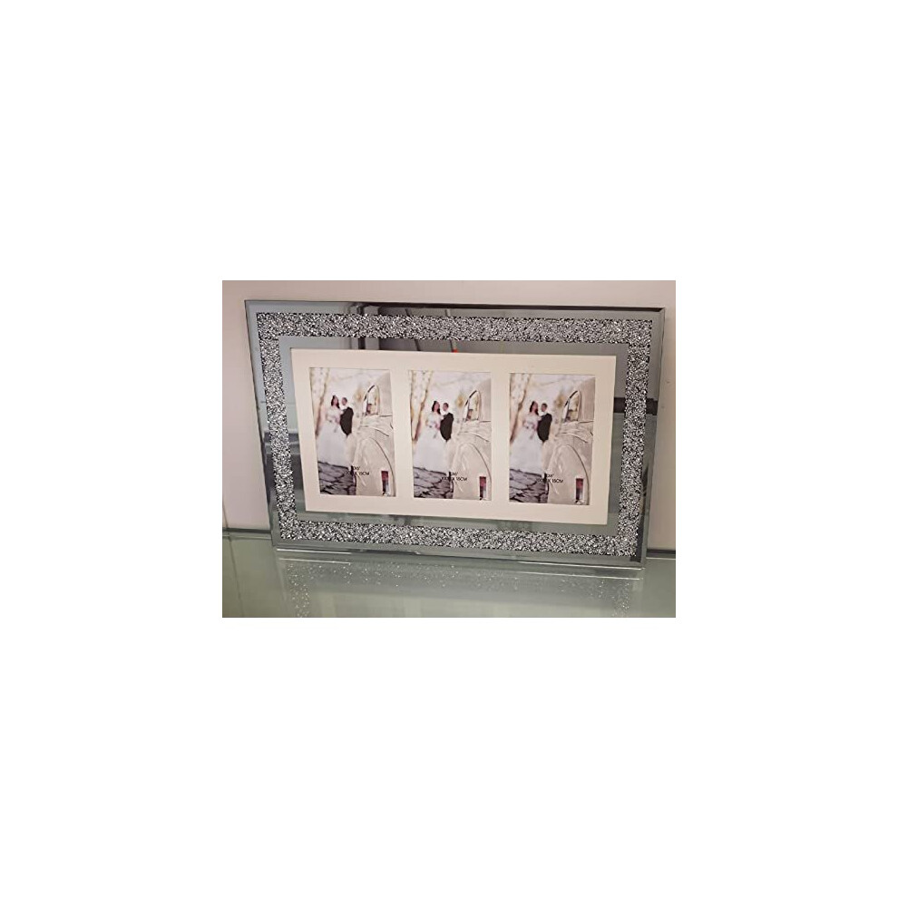 Silver Diamante Crushed Crystal Photo Frame Multi Aperture Picture Photo Frame For 3 Photos 4x6 inch Photo (48cmx29cm)