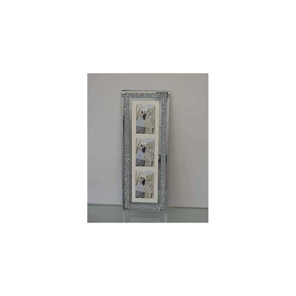 Silver Diamante Crushed Crystal Photo Frame Multi Aperture Picture Photo Frame Vertical For 3 Photos 4x6 inch Photo (63cmx24cm)