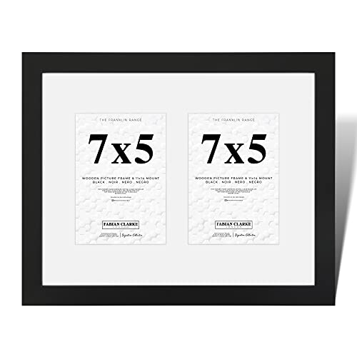 Fabian Clarke London Modern 14x11 Picture Photo Frame with White Mount For Two 7x5 Photos Multi Aperture Wood Moulding (Black)