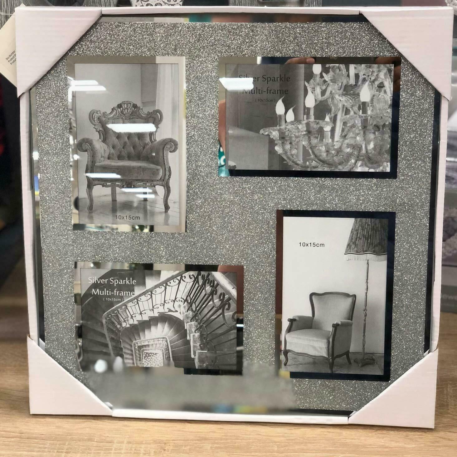 Multi Aperture 4 Picture Photo Frame 6�x4� Hold 4 Picture Silver Crystel Crushed