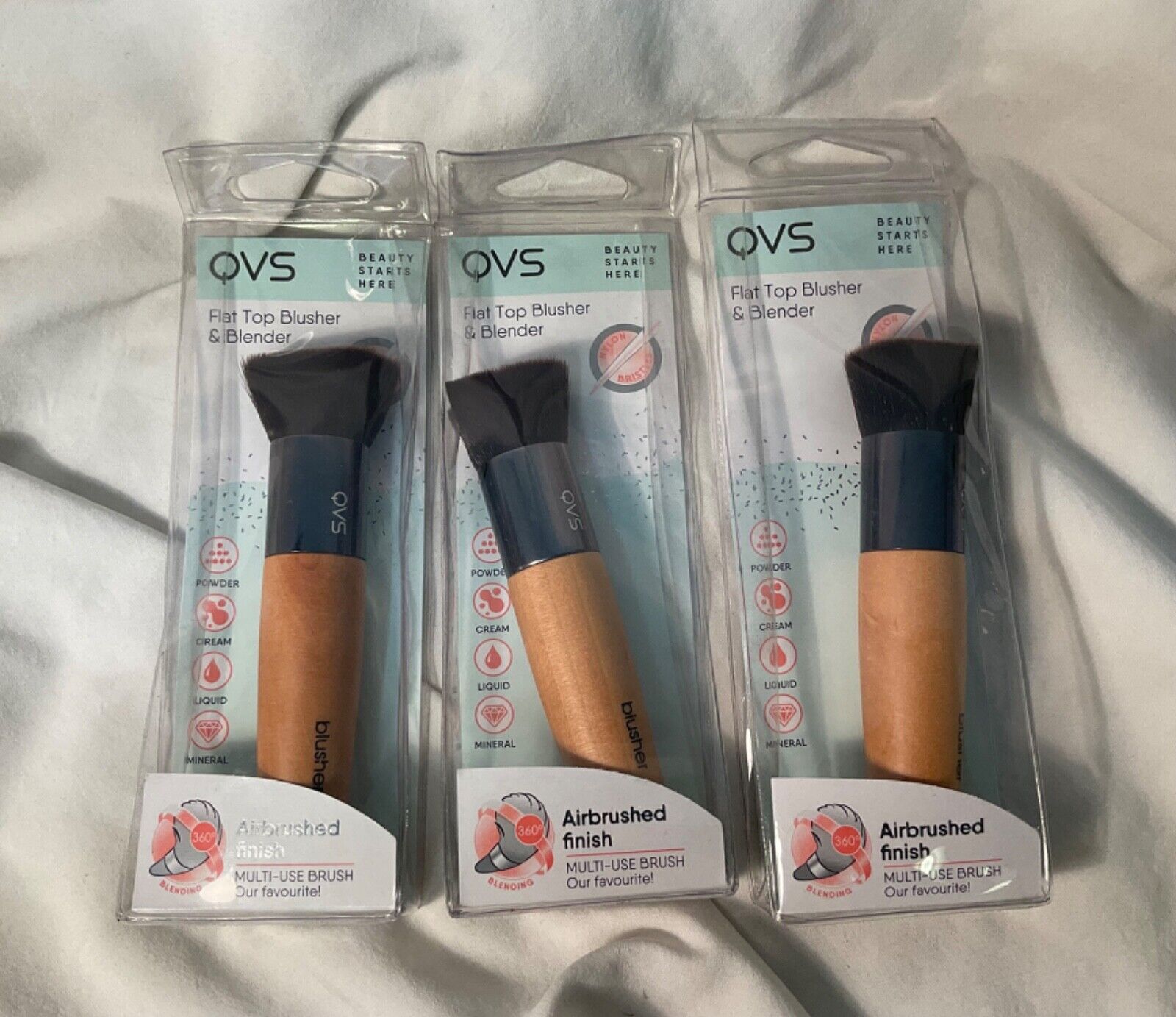 3 x QVS Flat Top Blusher & Blender Multi Use Brush