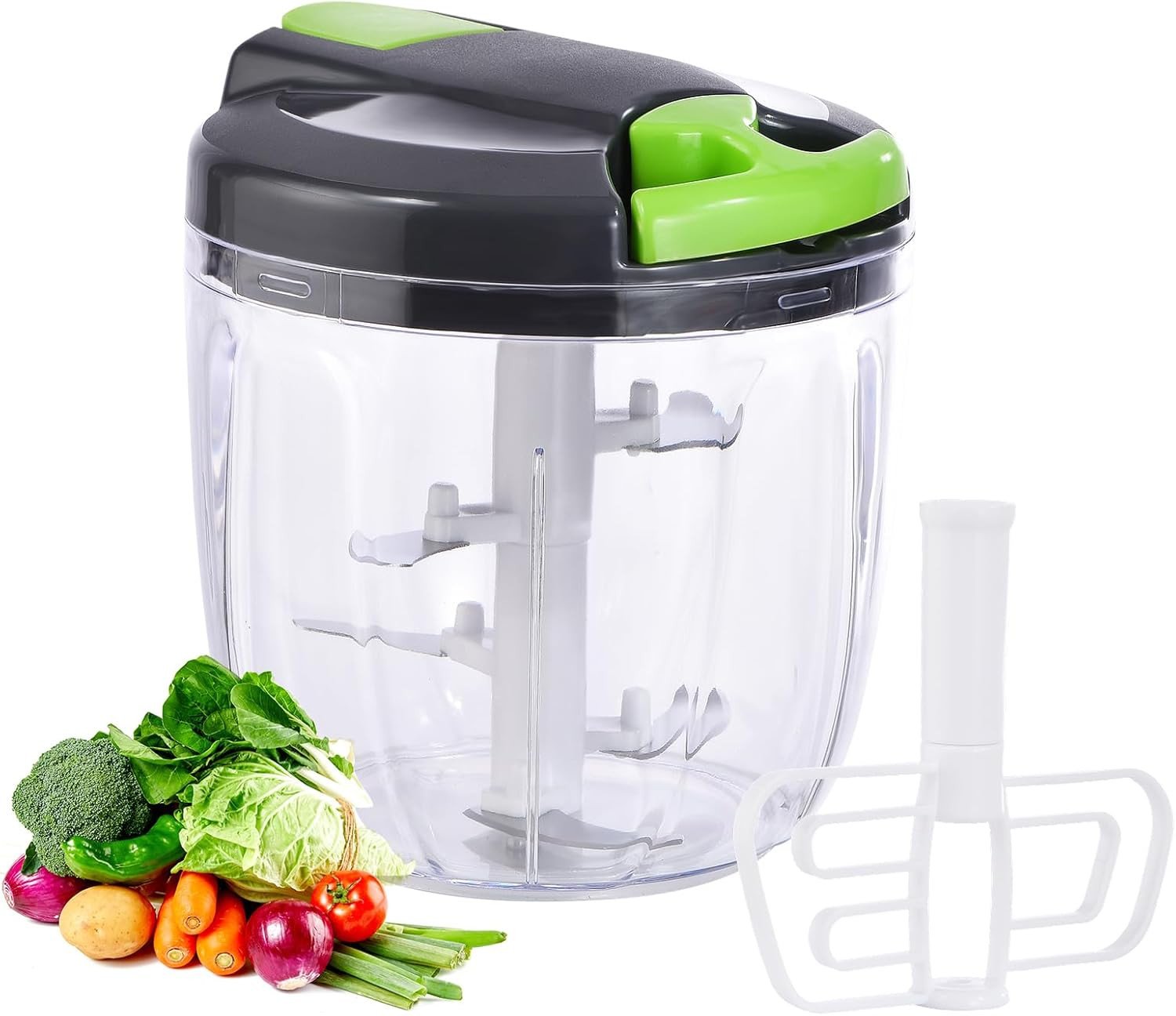 Multi-Functional Manual Food Processor, Unique Internal Design for Efficient Chopping Stainless Steel Blades Air-Tight Liquid-Tight Cover