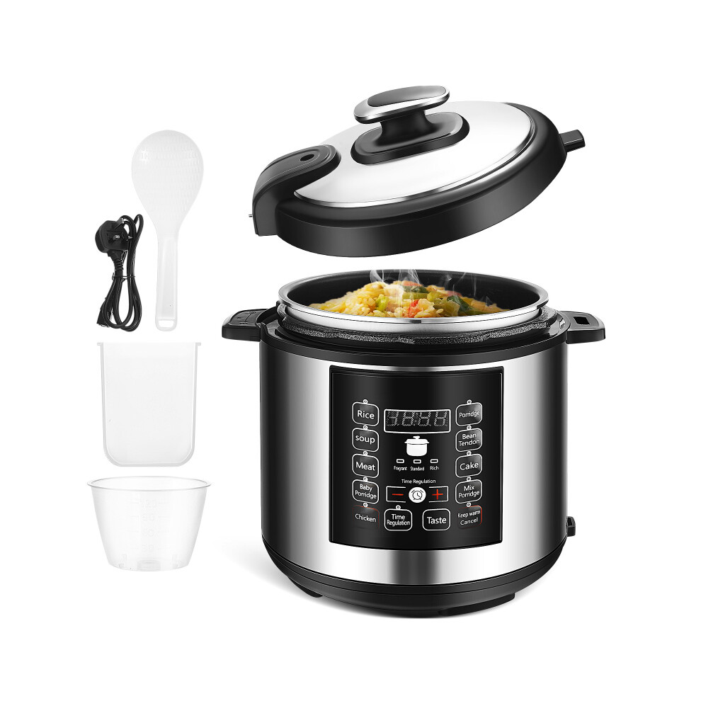 Multi-Function Electric Pressure Cooker 6L Stainless Steel Timer Black