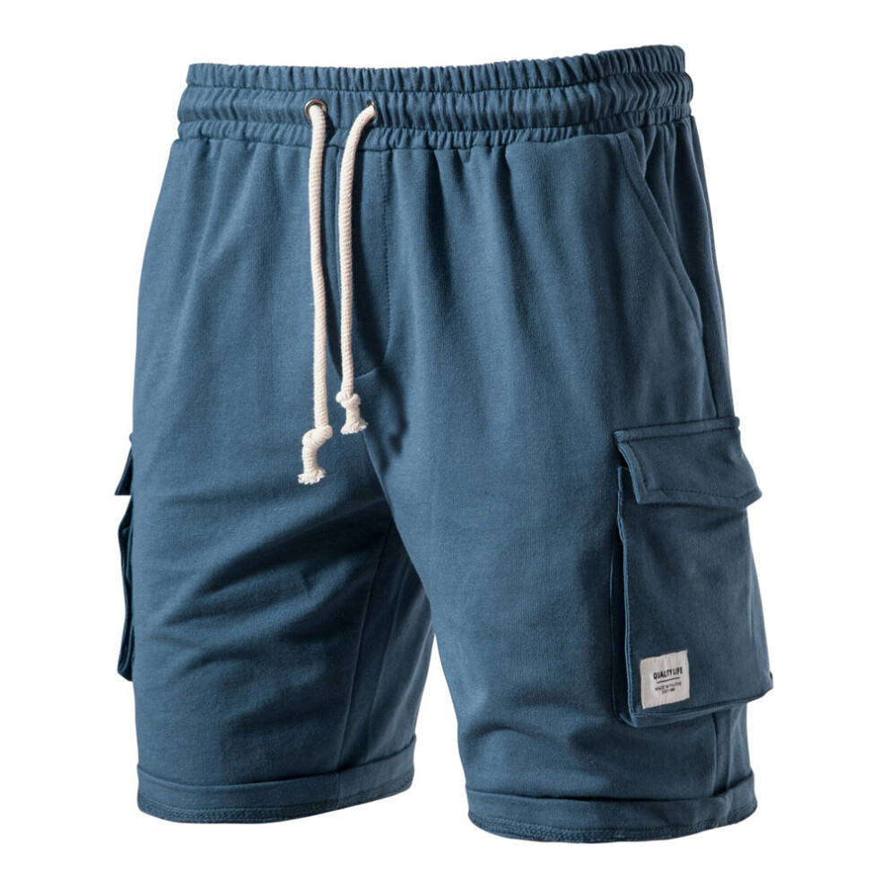 Summer Shorts for Men Cotton Sports Shorts Casual Men's Gyms Sweatpants Drawstring Beach Short Pants with Multi-pocket