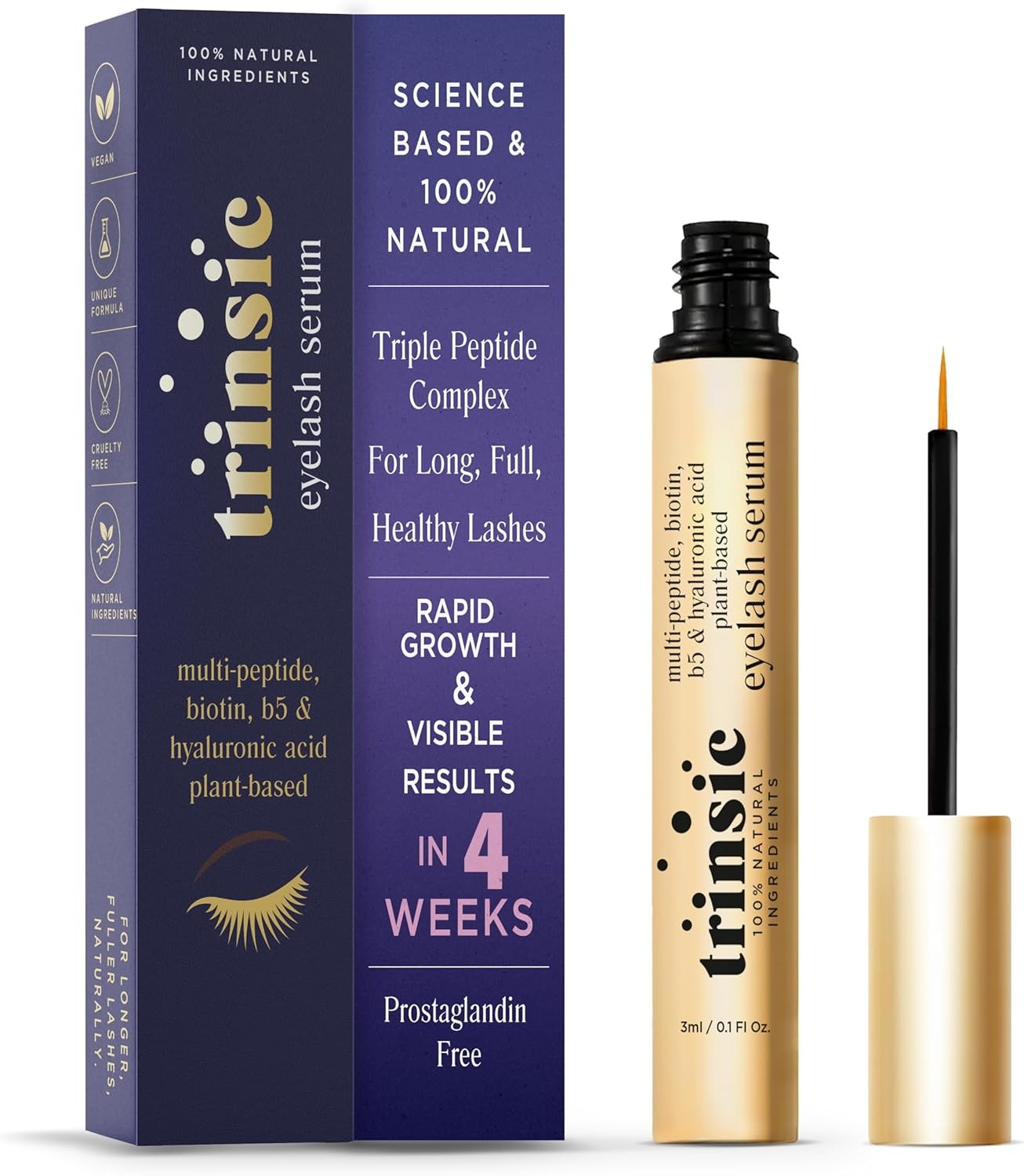 TRINSIC Natural Lash Serum - Rapid Growth with Multi-Peptide, Biotin & Hyaluronic Acid - Enhancing & Conditioning Eyelash Serum for Thicker, Longer & Healthier Lashes - Gentle & Safe Advanced Formula