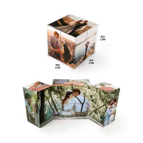 Personalized Photo Cube - Custom Multi Picture Frame Foldable Wooden Photo Block - Creative Birthday, Funny Desk Home Decor Birthdays Gift for Family Friends Couple