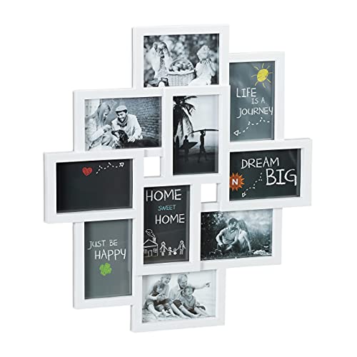 Relaxdays Collage Multi Picture Frame, For 10 Photos, For Pictures 9 x 13 cm,Vertical & Horizontal Format, H x W 55 x 50 cm, White