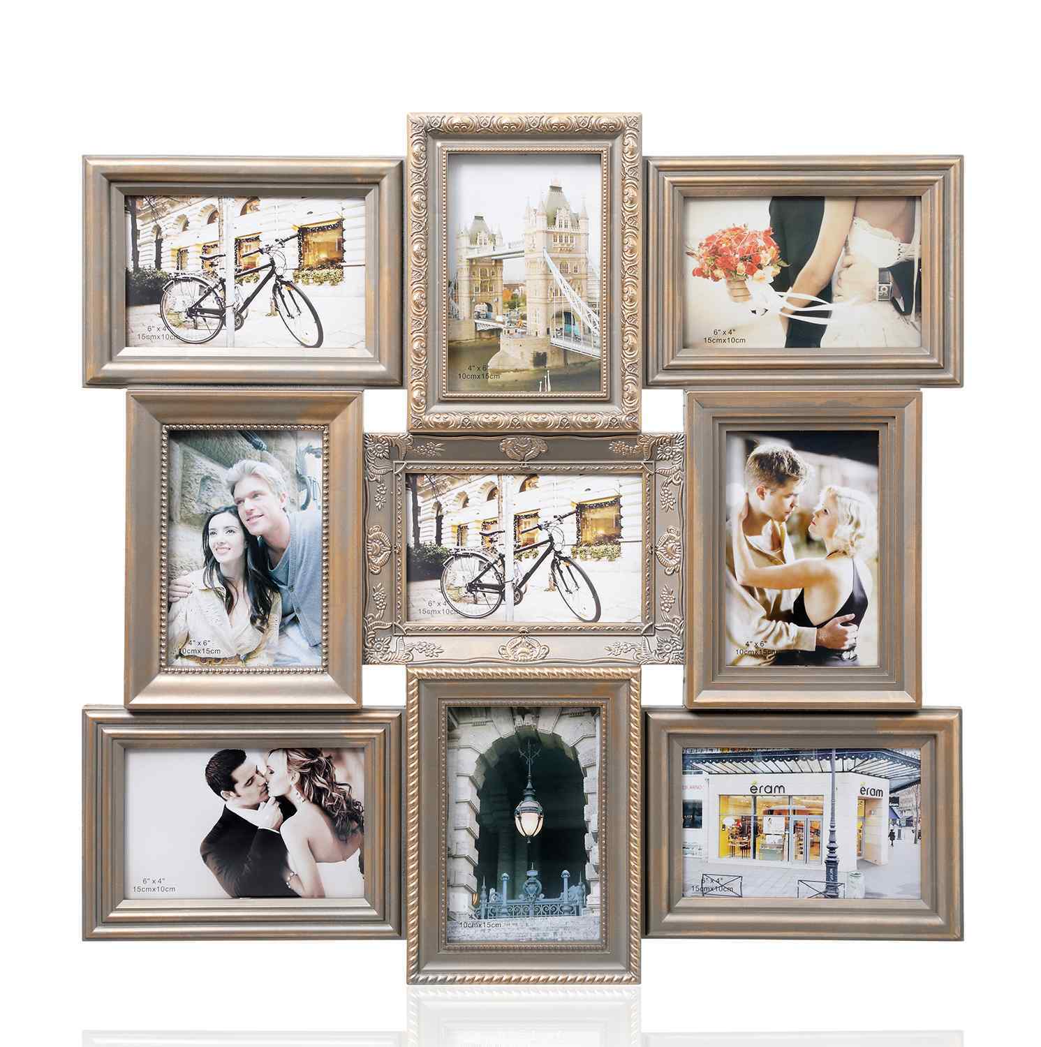 Multi Aperture Picture Photo Frame, Holds 9 x 6x4'' Photos Vintage Gold