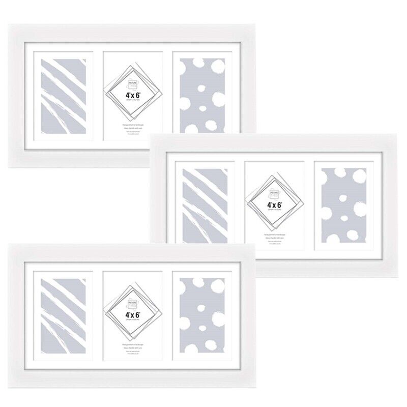 [Set of 3] 4"x6" White Multi Aperture Photo Picture Frame Collage Glass Frame