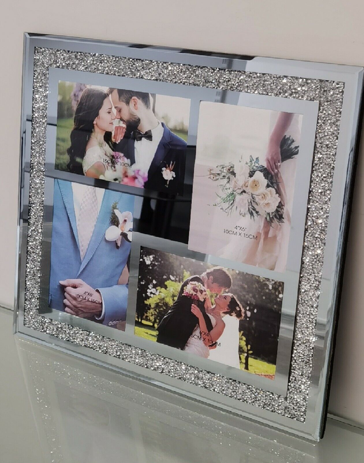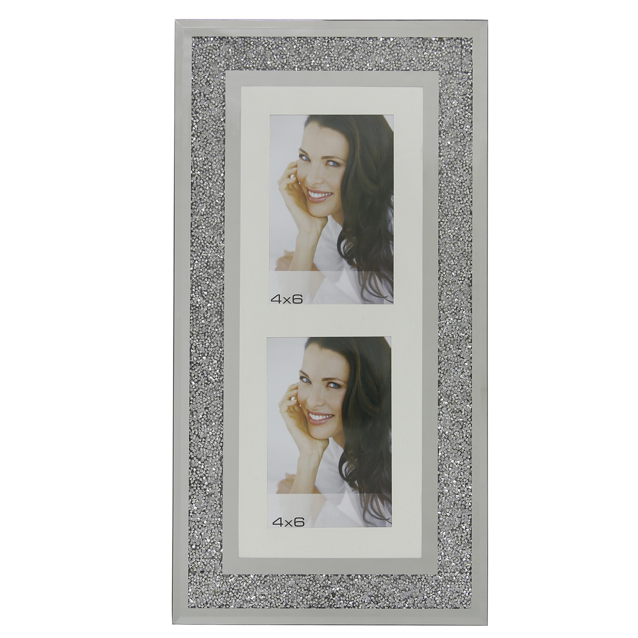 Double Photo Glass Silver Diamond Crush Wall Multi Picture Frame 4 x 6"