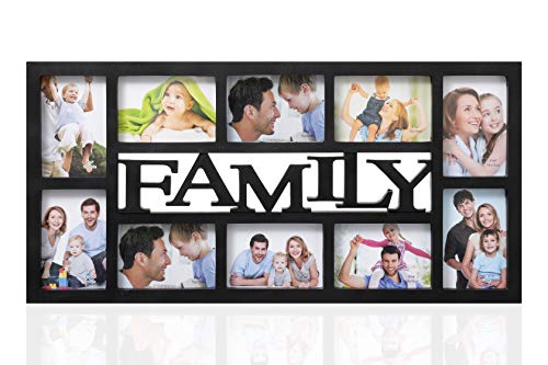 ARPAN Family Multi Aperture Photo Picture Frame - Holds 10 X 6''X4'' Photos (Black Family)