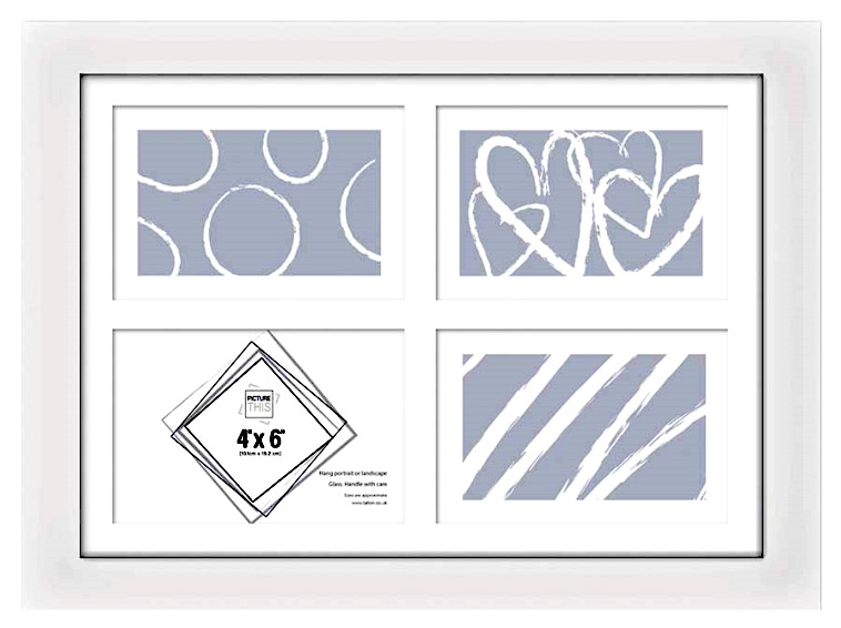 Multi Picture Frame Collage Aperture Photo Frames Holds 4 - 4"x 6" Photos White