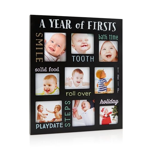 Pearhead Baby’s First Year Photo Frame – Milestone Keepsake Multi Photo Picture Frame, Wall Mount, Black