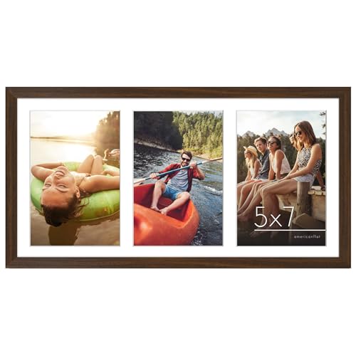 Americanflat 8x16 Panoramic Picture Frame in Walnut - Three 7x5 Photo Frame Openings - Multi Aperture Collage Picture Frame with Horizontal and Vertical Format for Wall and Tabletop