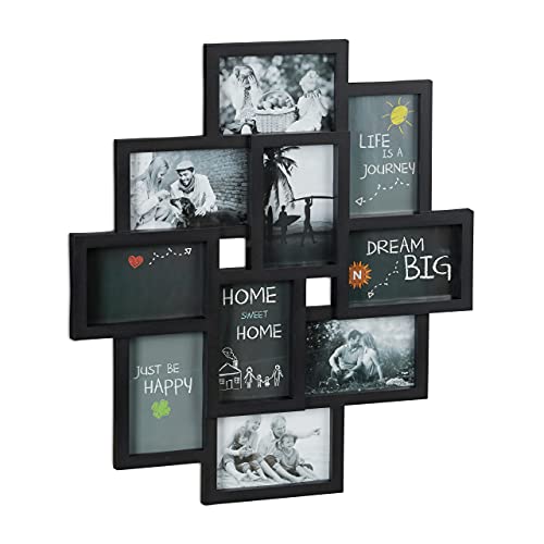 Relaxdays Collage Multi Picture Frame, For 10 Photos, For Pictures 9 x 13 cm,Vertical & Horizontal Format, H x W 55 x 50 cm, Black