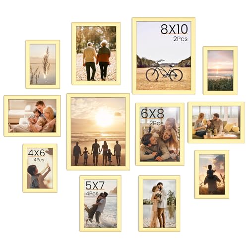 Feihorrm Gold Picture Frames Set of 12, Photo Frames Multiple Pictures, Wall & Tabletop Collage Photo Frame, Multi Size Picture Frame Includes Four 4x6, Four 5x7, Two 6x8, Two 8x10