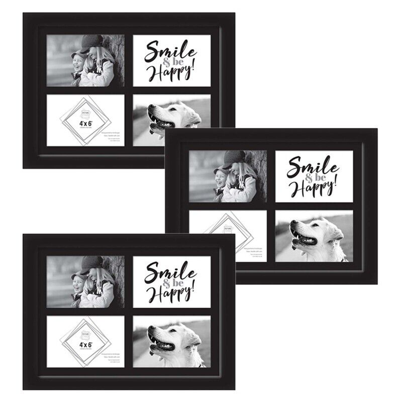 [Set of 3] 4"x6" Black Multi Aperture Picture Glass Frame Hold 4 Photos Collage