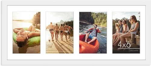 Americanflat 8x20 Panoramic Picture Frame in White - Four 6x4 Photo Frame Openings - Multi Aperture Collage Picture Frame with Horizontal and Vertical Format for Wall and Tabletop