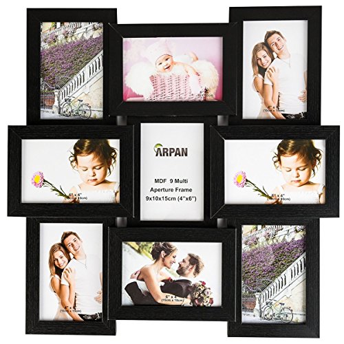 ARPAN MDF Multi Aperture Photo Picture Frame - Holds 9 X 6''X4'' Photos