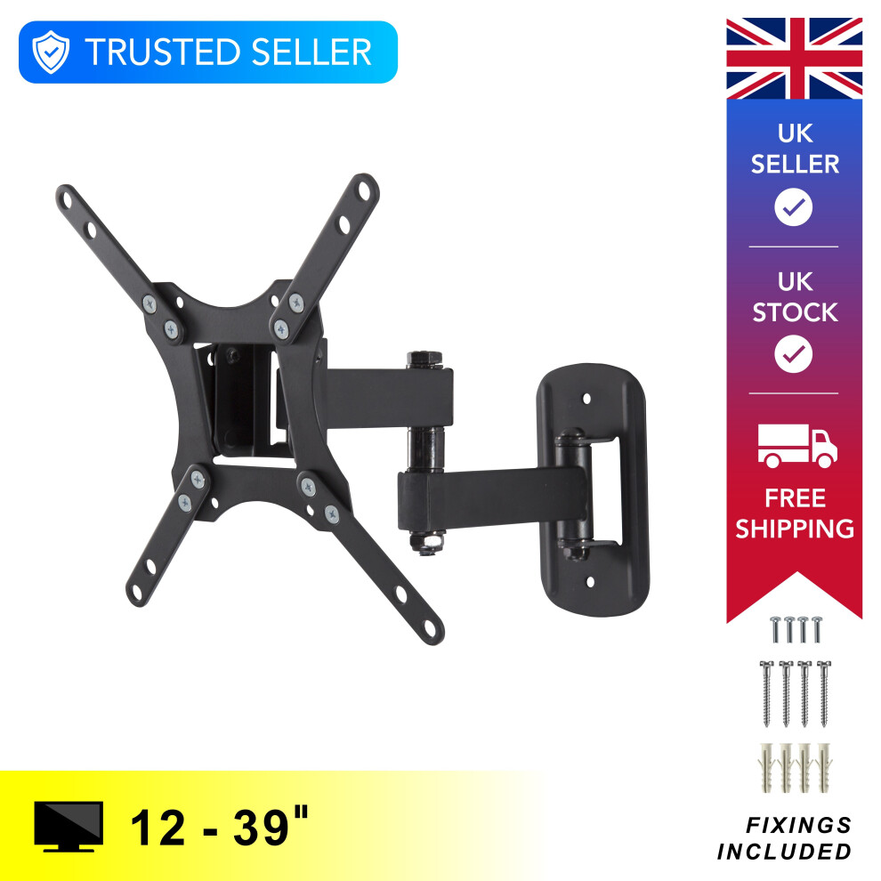 TV & Monitor Wall Bracket, Full Motion Up to 25", Multi Position Swivel & Tilt