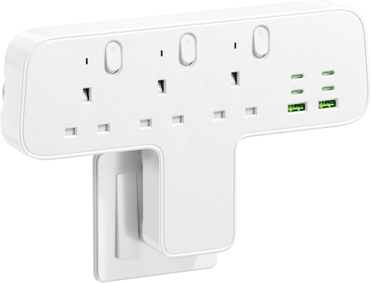 Multi Plug Adaptor, 6 in 1 Plug Extension Socket 3 Way 3 USB(3.4A,1 Type-C), Wal