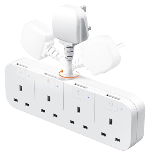 Mscien Plug Extension Socket, Multi Plug Adaptor 4 Way with Individual Switches