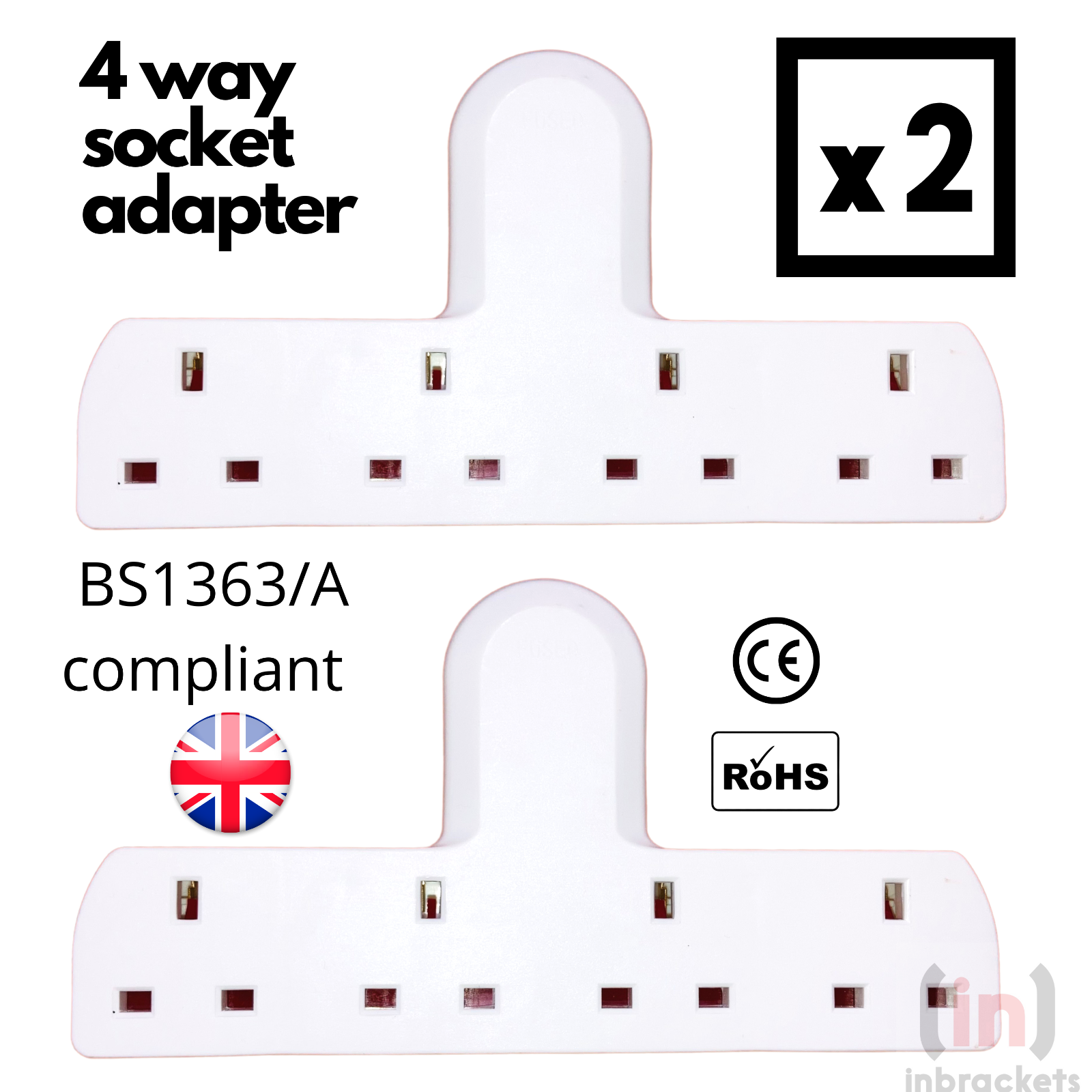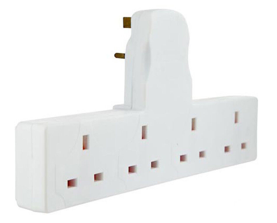 4 Gang Extension Socket Multi Plug 4 Way 13a Mains Power Adaptor UK STOCK 2 PACK