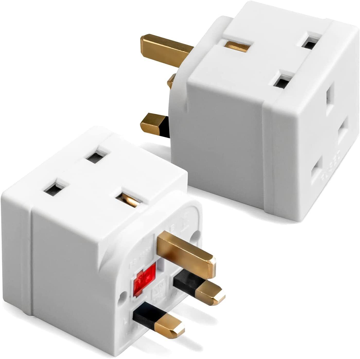 FAMHOME 2 Way block Plug 2 way Plug in Block Mains Adaptor, 2 Way Multi Socket Plug Adaptor, Power Extension Wall Adaptor for Smartphone, Home, Office, Travel (White (2 Pack))