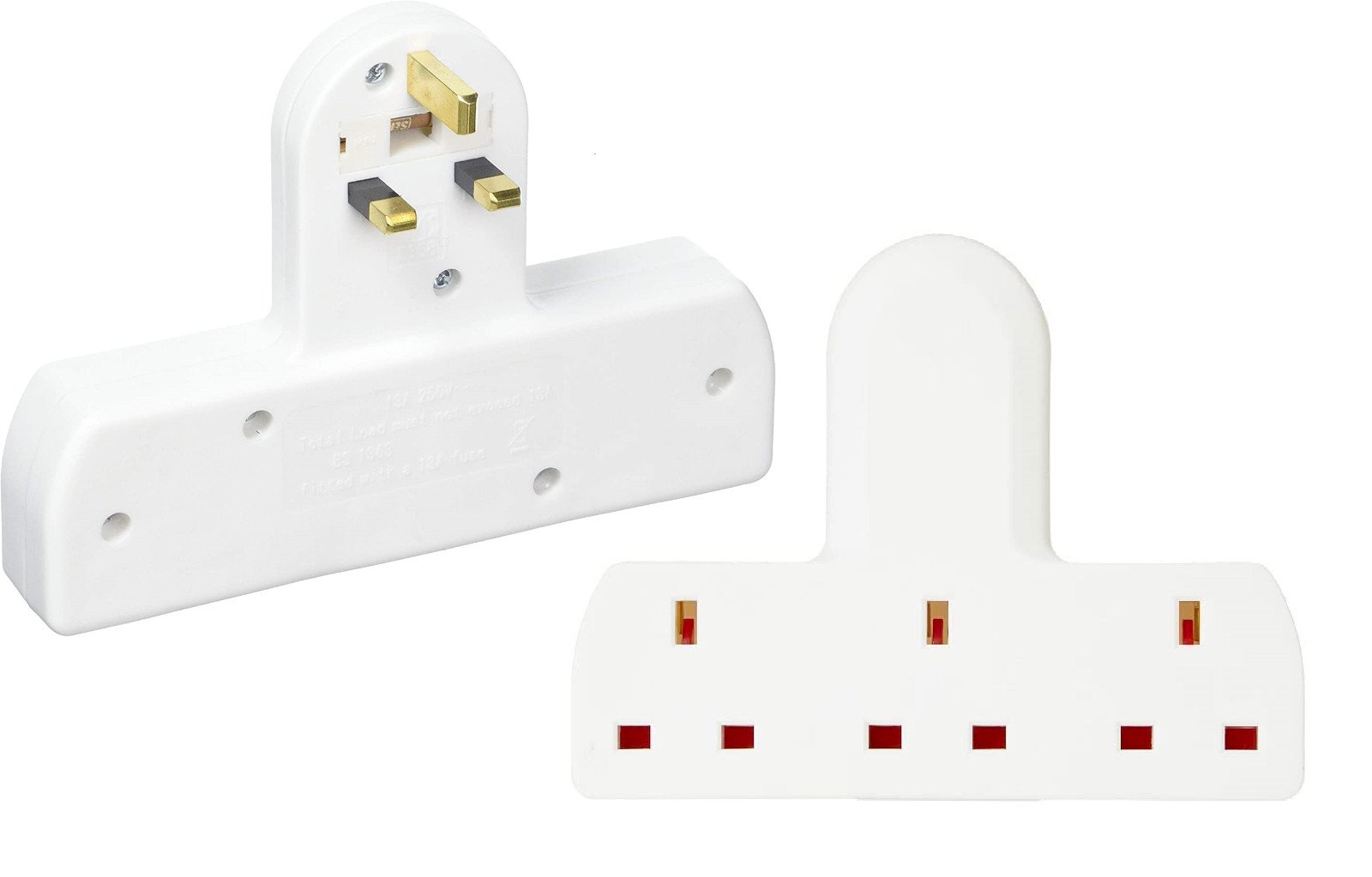 3 WAY ADAPTOR 3 PIN MAINS SOCKET 13 AMP DOUBLE HOUSEHOLD MULTI PLUG ADAPTER UK
