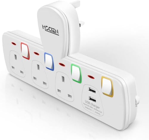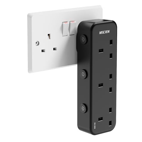 Plug Adapter, Mscien 3 Way Extension Plug with 3 USB, Plug Extension Socket with Independent Switches, Multi Plug Adaptor UK Built-in Surge Protector with 180 Degree Rotation Button