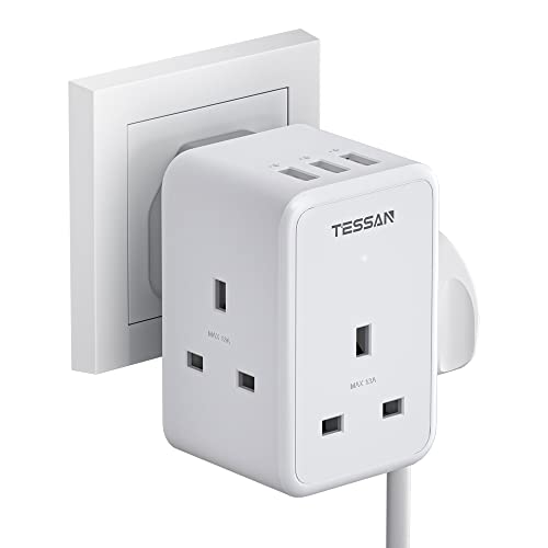 USB Charger Plug Adaptor UK, TESSAN 3 Way Plug Extension Socket with Multi USB Charging Station, Multiplug Extender for Home,Office, School Supplies