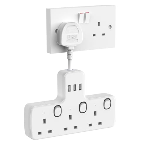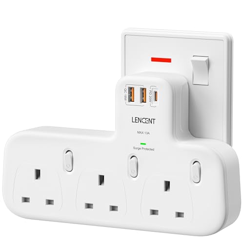 LENCENT Plug Extension Socket, 3 Way Multi Plug Socket with 3 USB Ports, Power Extender Wall Adaptor for Household Appliances, Iphone, Smartphone, Tablet, Home, Office, Bedroom, 13A 3250W