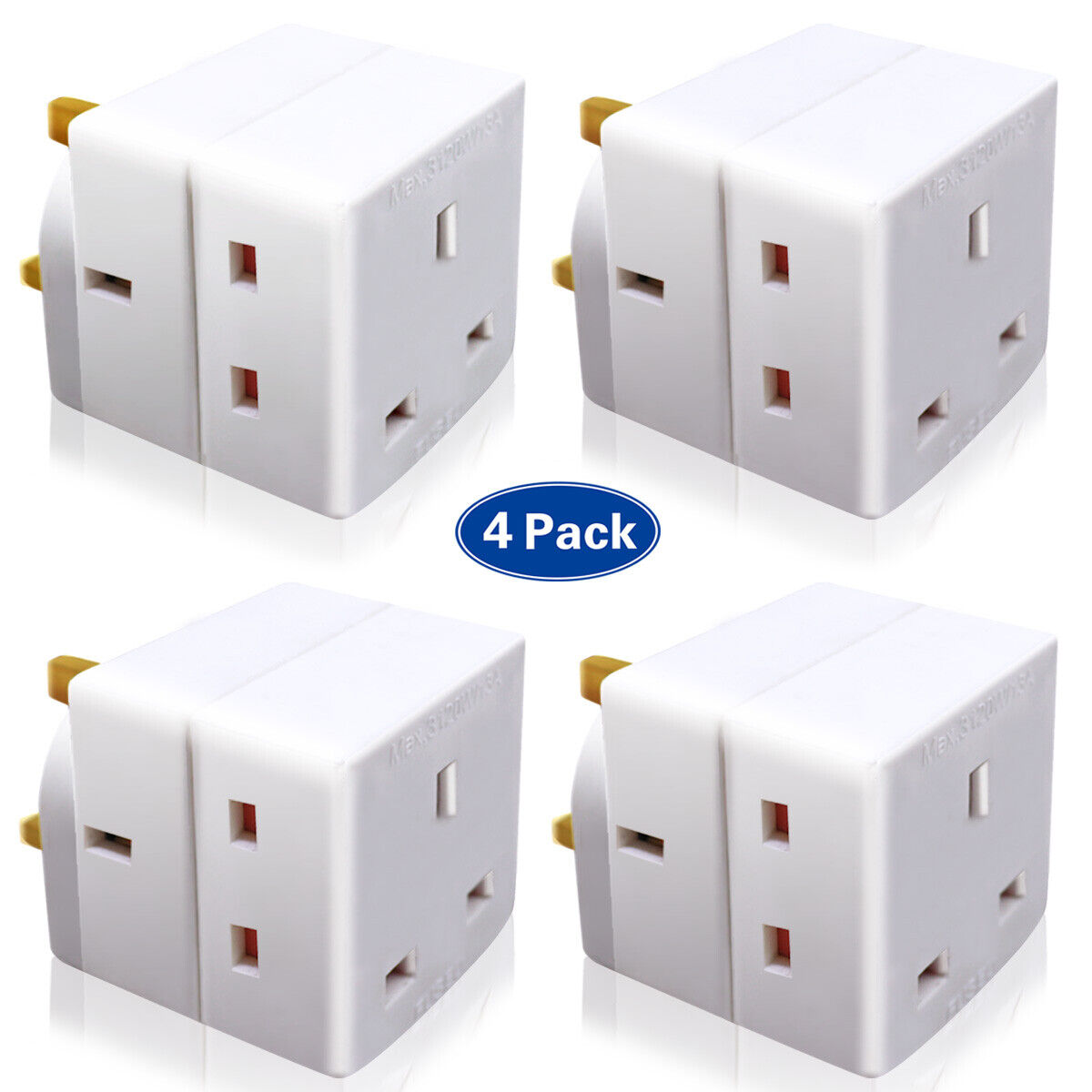 3 WAY 3 PIN ADAPTOR CONVERTER 13 AMP SOCKET HOUSEHOLD MULTI PLUG UK 4pcs