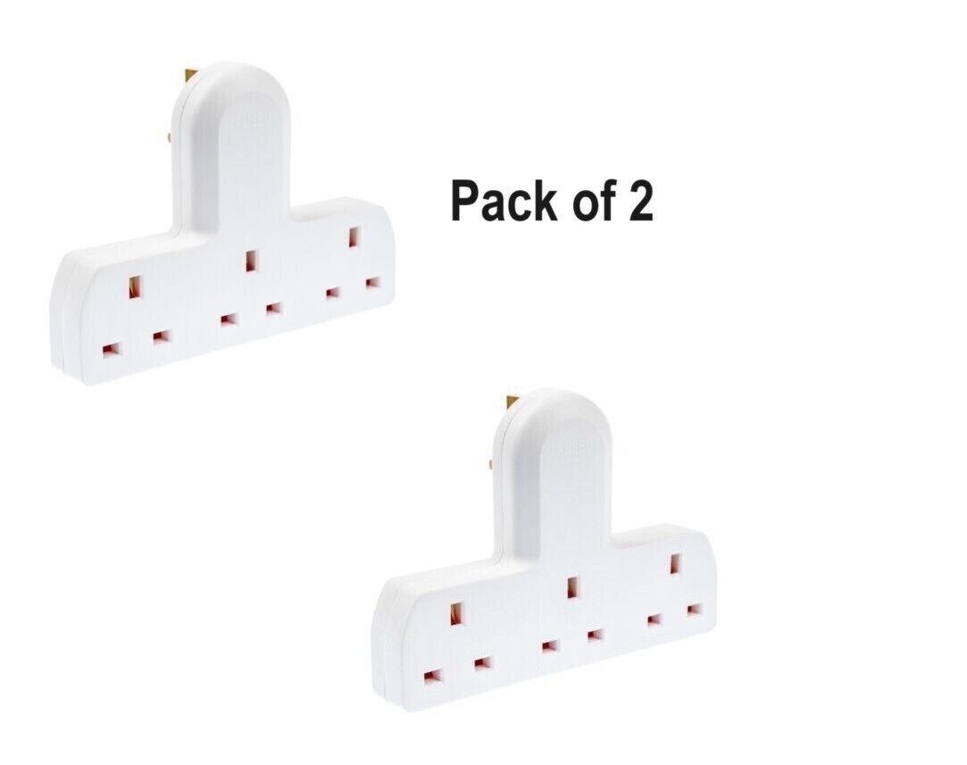 2 Pack 3 Way Triple Gang UK 3 Pin Multi Socket Plug Extension Adaptor Cable Free