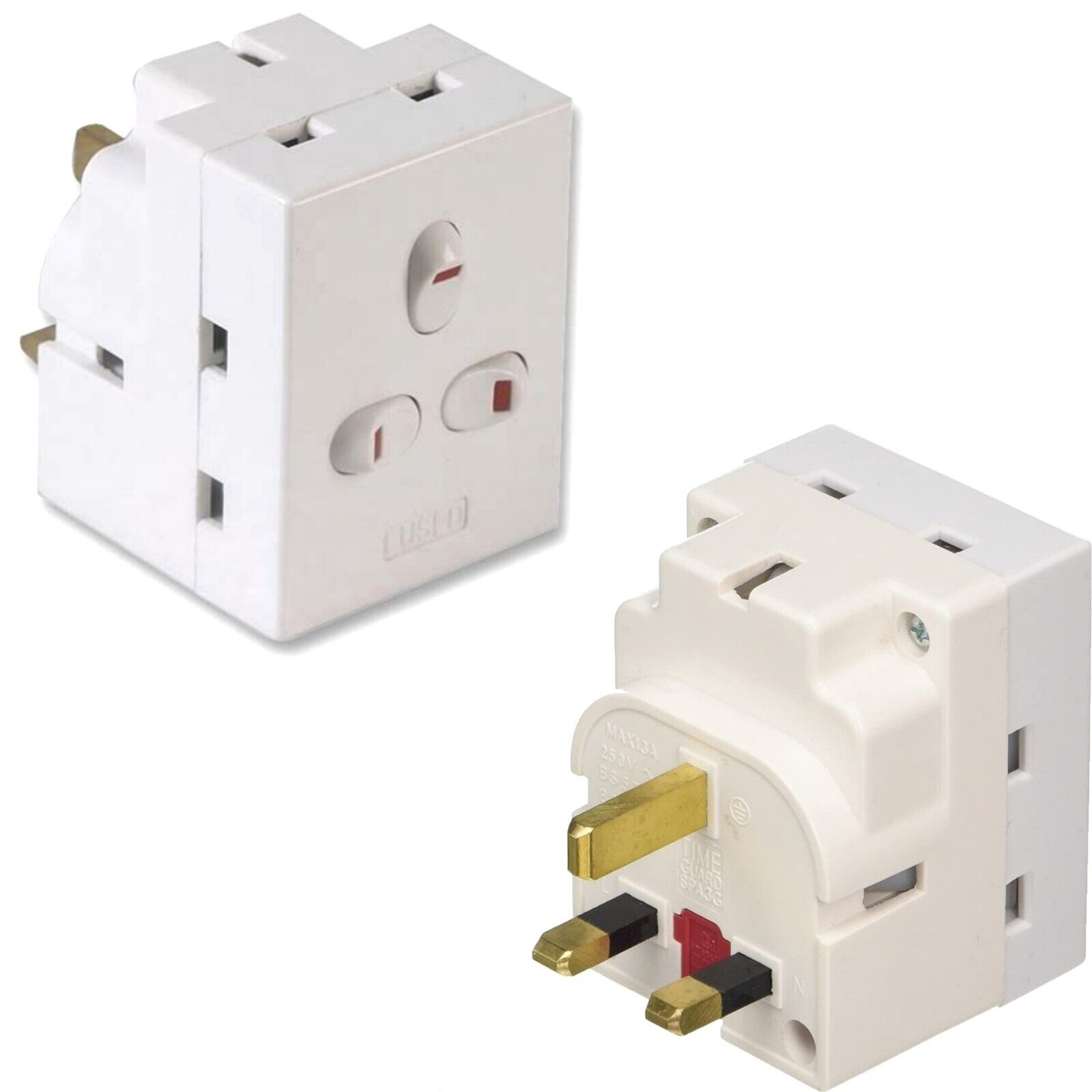 2 Way 3 Pin Power Plug Adaptor Splitter 13A Multi Wall Plug Cube 3 pins Socket Splitter Extension Plug adaptor UK Socket Splitter Block for Kitchen, Home, Office etc (pack of 1)