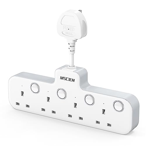 Mscien Plug Extension Socket, Multi Plug Adaptor 4 Way with Individual Switches,