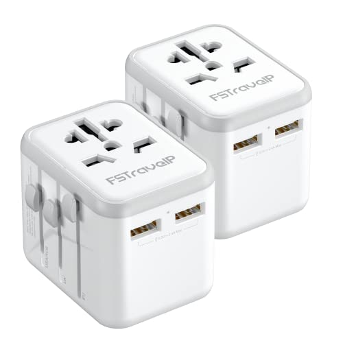 2 Pack Universal Travel Adapter, Travel Plug Adapter Worldwide with 2 USB and 1 AC Socket, FSTravelP International Travel Adapter for EU, USA, UK, Australia, Universal Plug Adaptor for Multi Countries
