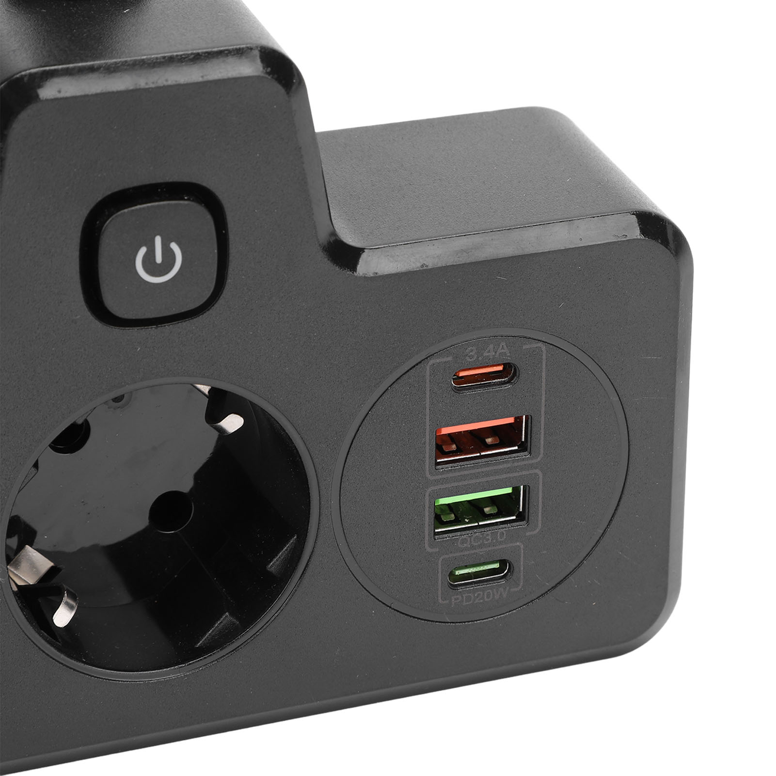 Multi Socket Outlet Adapter With 2 USB 2 Type C Ports And 3 AC Plug Extender