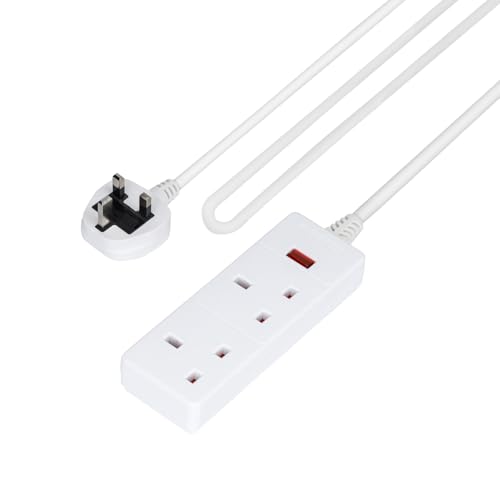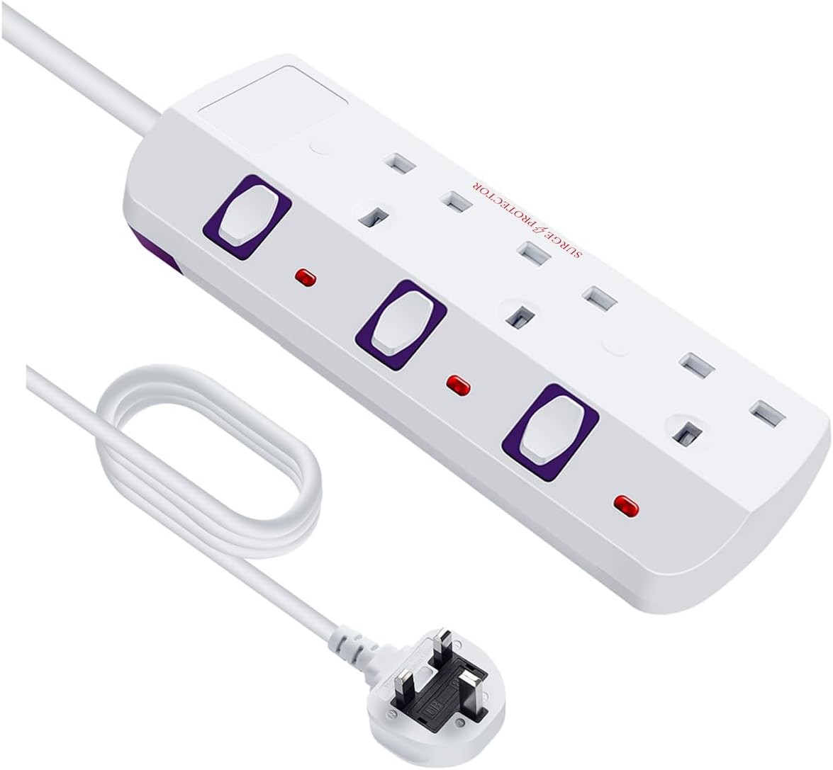 Extension Lead 3 Way Switches Plug Extension with 2M Cable, Multi Socket Home E