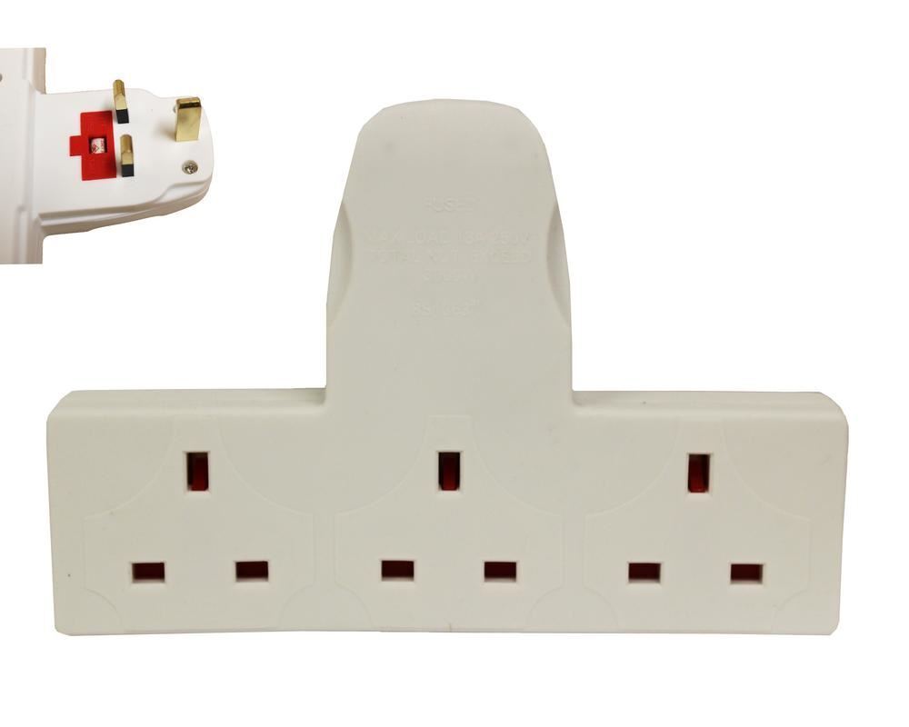 MAINS 3 WAY MULTI SOCKET ADAPTOR NO WIRES EXTENSION WALL BLOCK PLUG 240V 13A