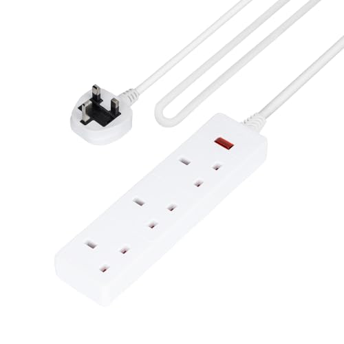 Extension Lead with 4 USB Slots, 4 Way (13A/3250W) Multi Plug Extension Cable, UK Desktop Power Extension Cord with Multi Socket, 1.5M Extension Cable (white, 1.5M)