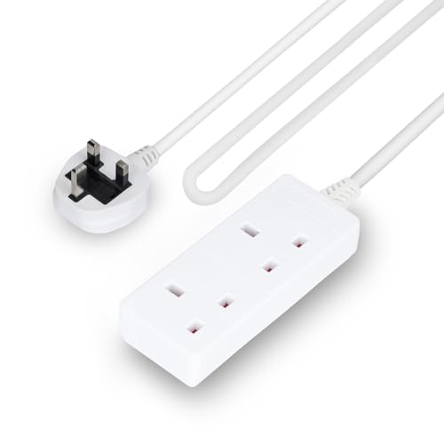 GEEPAS 2 Gang Extension Lead, 2M Cable | 2-Way Plug Extension Cable, 13 A | Wall Mountable & Multi Socket Mains Strip for Home Bedroom Office | Heavy Duty UK Plug | White