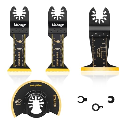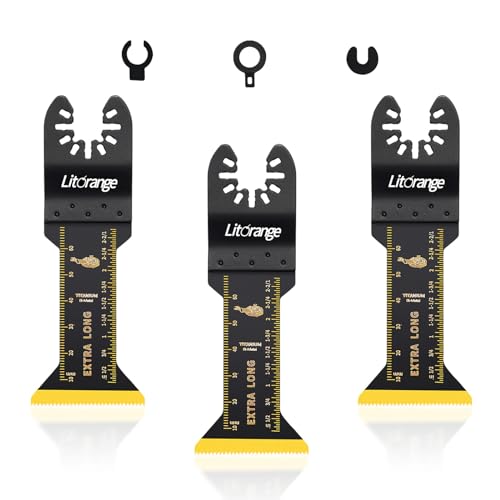 Litorange Titanium Oscillating Multi Tool Blades Extra-Long Saw Blades 3 Pack for Cutting Metal Nails Screws Wood and Plastic, Fit Dewalt Ryobi Milwaukee Rockwell Makita Bosch