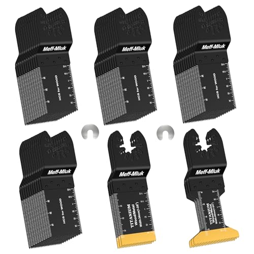 Meff-Mluk 50PCS Oscillating Tool Blades, Professional Universal Titanium Multitool Blades for Wood Plastics Metal Cutting, Quick Release Multi Tool Blade Kits Fit DeWalt Makita Dremel and More