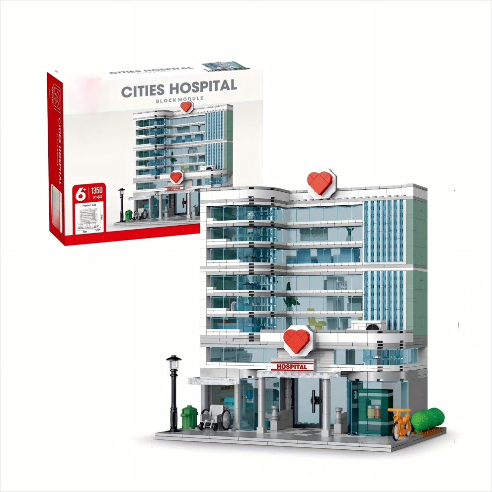 Hospital Building Block Set with Builtin LED Lighting, Modern MultiFloor Medical Center Model, 1350pcs