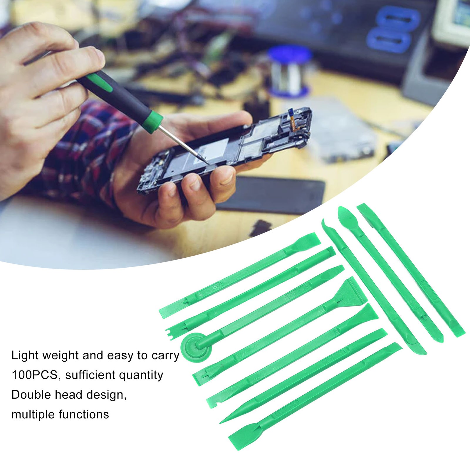 100PCS Antistatic Spudger Multifunctional Light Weight Soft ABS Universal Pry Opening Tool for Phone Repair Green Professional Accessories (Akozong5q6eiw1h2-13)