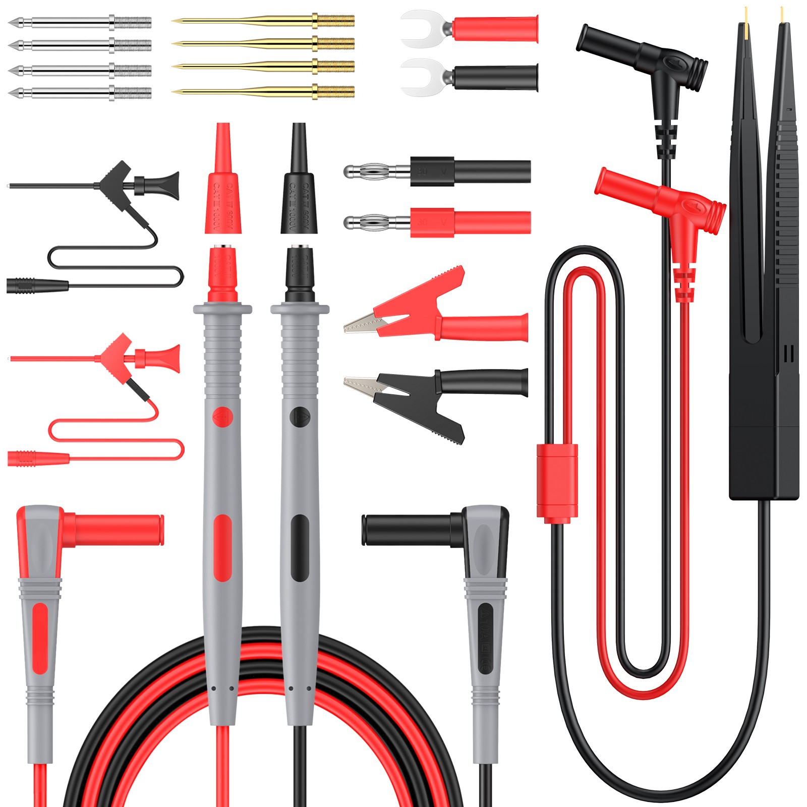 BINTA 25PCS Silicone Multimeter Test Leads Kit with Replaceable Test Probes 4PCS Large/Medium Alligator Clips Tweezer, Professional Leads Kit for Industrial Car Home