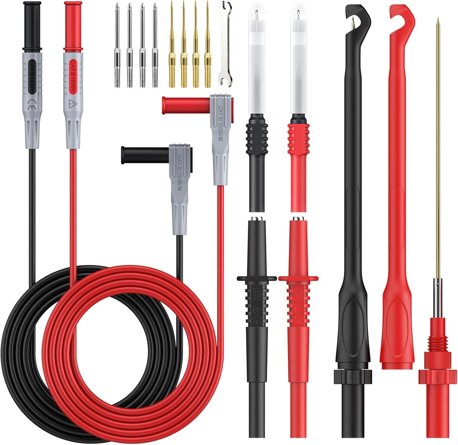 BINTA Silicone Multimeter Test Leads Set with Insulated Test Leads, Alligator Clips, Test Hooks, Test Probes, Test Tweezers, Professional Lead Kit for Digital Multimeter Testing CATII 1000V/ 19A