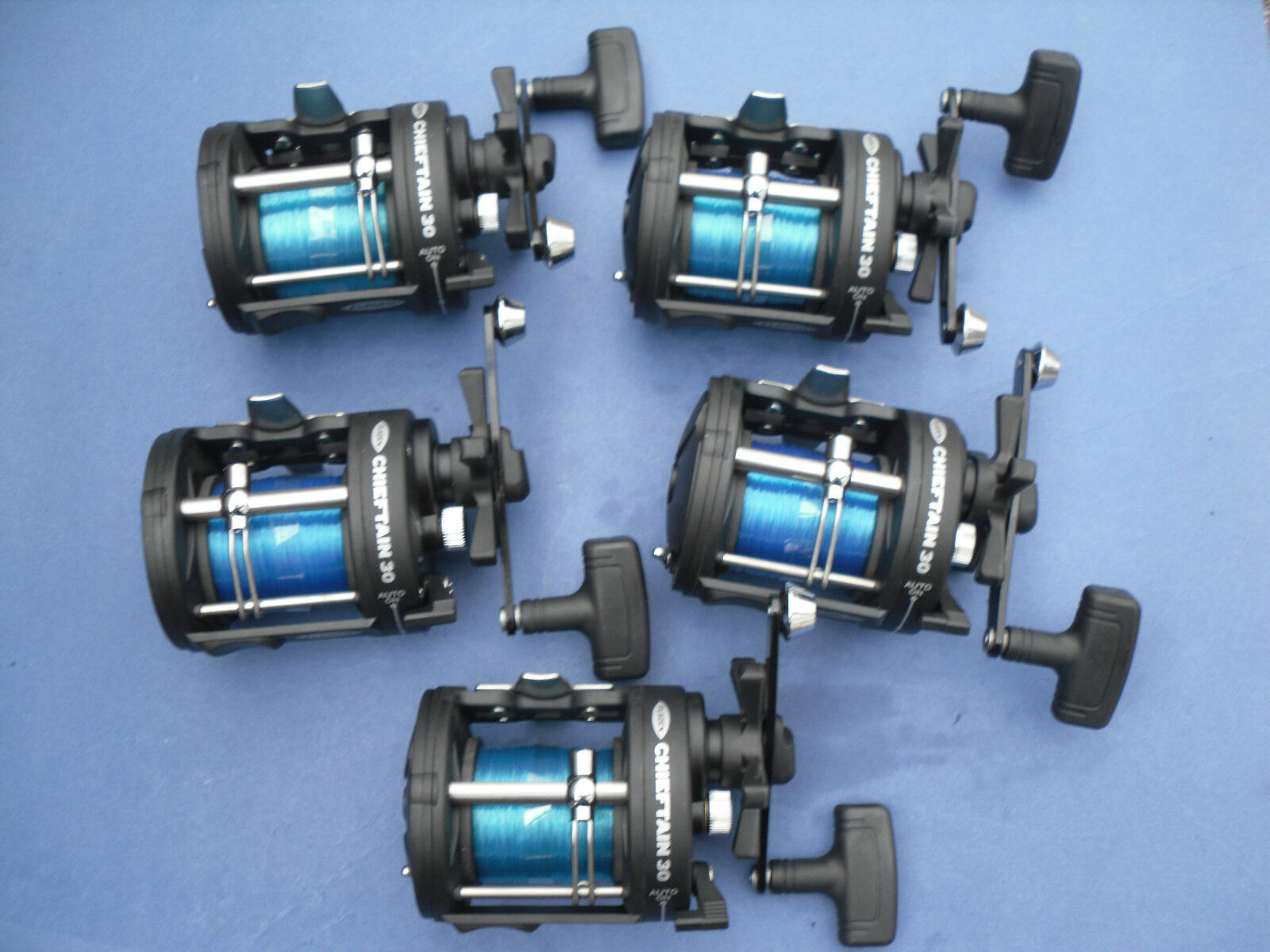 5 X FLADEN CHIEFTAIN 30 MULTIPLIER REELS WITH LINE ON BOAT SEA FISHING TACKLE